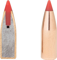 Hornady V-Max Bullets feature a polymer tip which enhances accuracy and promotes devastating expansion. The tip raises the ballistic coefficient for faster velocity and also acts as a wedge, initiating bullet expansion. The flat base creates in-flight stability for long-range shooting.