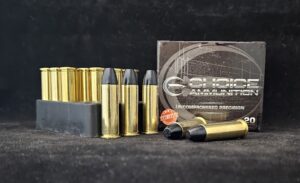With the popularity of the .38 Special, the team at Choice Ammunition tasked themselves with creating a round suitable for the caliber, that will deliver deep penetration and stopping power for bear and other predator protection. It is also an excellent round for hogs and gators at close range. Our +P round for the .38 Special boasts 478 foot pounds of energy from a 5.5″ barrel at 1,169 feet per second. We hand load each and every round to create consistent performance, reliability and superior accuracy compared to traditional “factory” produced rounds. We also produce our own exclusive “Hard Cast” bullet for this round, with a true 22-23 brinell hardness, which optimizes the round for deep bone and tissue penetration.