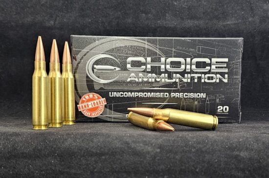 Choice Ammunition has taken our 100% hand-loading techniques and produce an extremely accurate, highly dependable round for the 7mm-08 in this load. Our loading tolerances are only matched by passionate hand-loaders in their own loading rooms. Consistent seating depths, powder charges and proprietary formulas of Choice Ammunition, make this 140 grain Berger VLD-Hunting round the best you can buy on the commercial market today.